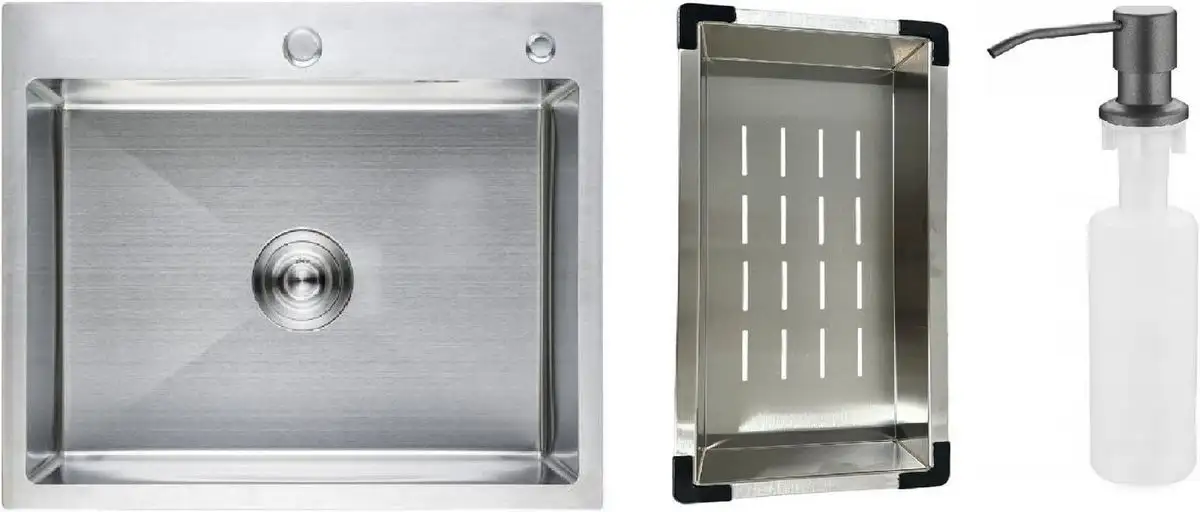 Кухонная мойка Schtoff Best Silver 6050 + коландер металл K-1 BLACK + дозатор SD-1 GREY