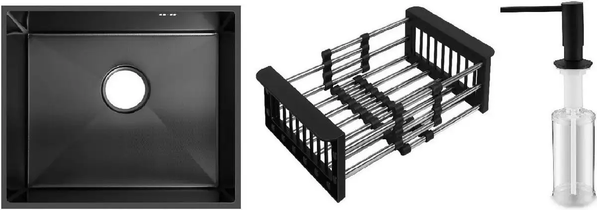 Кухонная мойка Schtoff Undermount Best Decor Black 5545 + коландер KR-1 BLACK+ дозатор SD-1 BLACK
