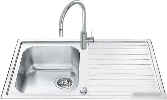 Кухонная мойка Smeg LLR861-2 выполнена из матовой нержавеющей стали, что обеспечивает ей прочность и привлекательный внешний вид. Она устанавливается врезным способом и подходит для шкафов шириной 45 см. Мойка имеет одну глубокую чашу с глубиной 21 см, что удобно для мытья посуды и продуктов. Оборачиваемая основная часть позволяет выбрать наиболее удобное расположение. В комплект входит корзинчатый вентиль 3 ”1/2 с эксцентриком, а также сифон с возможностью подключения посудомоечной или стиральной машины. Размеры мойки составляют 86,8 см по ширине и 51 см по глубине, чаши — 40 × 34 см. Для легкой установки идут уплотнительная лента и фиксирующие зажимы. Матовая поверхность легко чистится и выглядит современно. Мойка идеально подходит для кухни с нишей шириной 84 см и глубиной 48 см.