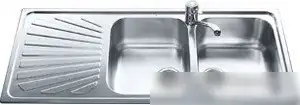 Кухонная мойка Smeg SP116S устанавливается врезным способом на столешницу. Она имеет прямоугольную форму и две чаши, сделанные из нержавеющей стали, что обеспечивает долгий срок службы и простоту ухода. Глубина чаши составляет 21 см, что удобно для мытья посуды и продуктов. Мойка оснащена крылом слева, которое можно использовать для подготовки или размещения посуды. Размеры мойки — 116 см в ширину, длина чаши — 40 см, ширина — 34 см, что подходит для просторных кухонь. Диаметр сливного отверстия — 3,5 дюйма, что обеспечивает быструю сливку воды. В комплекте нет клапана-автомата и разделочной доски. Мойка приятна в использовании благодаря надежной конструкции и хорошему функционалу.