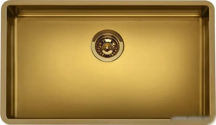 Кухонная мойка Smeg VSTR71BRX выполнена из нержавеющей стали толщиной 1 мм с матовой поверхностью и цветом латунь. Она предназначена для врезки в столешницу шириной 80 см и имеет прямоугольную форму с одной чашей, расположенной по центру. Глубина чаши составляет 20 см, что позволяет удобно мыть посуду и продукты. Мойка оснащена переливом для безопасной эксплуатации и подходит для установки в нержавеющую столешницу. В комплект входит уплотнительная лента и фиксирующие зажимы для быстрой установки, а также сифон с возможностью подключения посудомоечной или стиральной машины. Размеры ниши под монтаж — шириной 71.2 см и глубиной 40.2 см, что облегчает установку. Модель не включает смеситель, клапан-автомат или разделочную доску. За счёт высококачественной отделки с PVD покрытием поверхность легко очищается и долго сохраняет вид. Удобство использования достигается благодаря оптимальным габаритам и функциональной конструкции.