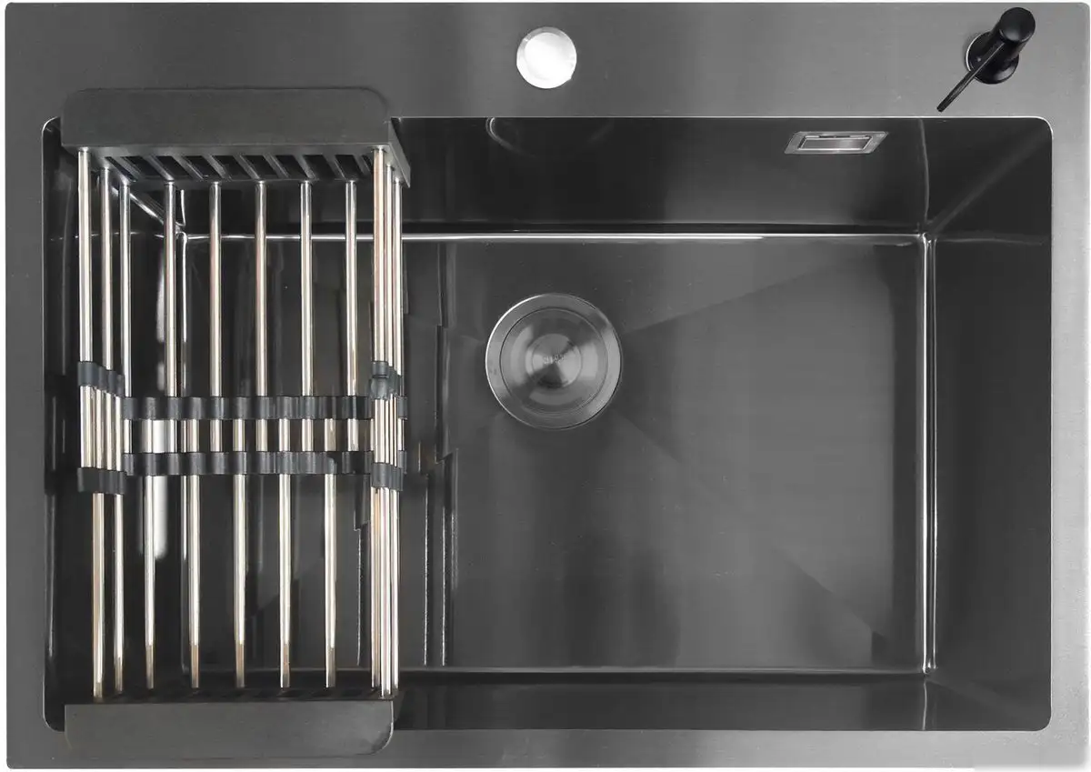 Кухонная мойка Stellar Evier E7050NB выполнена из прочной нержавеющей стали толщиной 3 мм и имеет стильный графитовый цвет. Она устанавливается врезным способом, что позволяет ей хорошо вписаться в любой кухонный дизайн. Мойка имеет одну глубокую чашу с глубиной 22 см и размеры 70х50 см, что удобно для мытья посуды и продуктов. В комплекте есть все необходимые крепления, сливной клапан и инструкции для быстрого монтажа. Ее поверхность полированная, что делает уход проще, а наличие линий для врезки облегчает точную установку. Основное расположение чаши по центру и наличие дополнительных элементов обеспечивают комфортное использование.