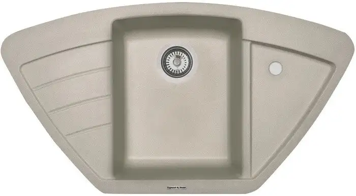 Кухонная мойка Zigmund & Shtain Eckig 900 выполнена из прочного искусственного камня и предназначена для врезной установки на столешницу. Она имеет угловую форму и состоит из одной основной и одной дополнительной чаши, что удобно для разных задач на кухне. Глубина основной чаши составляет 18 см, что позволяет легко мыть посуду и продукты. Мойка окрашена в приятный бежевый цвет, хорошо сочетается с разными кухонными интерьерами. Основная чаша расположена по центру для удобства использования. Конструкция включает перелив в малой чаше для предотвращения переполнения.