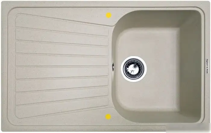 Кухонная мойка Zigmund & Shtain Klassisch 790 в бежевом цвете идеально подойдет для установки в кухонную столешницу. Она имеет прямоугольную форму и одну большую чашу, глубиной 21 см, что удобно для мытья посуды и продуктов. Мойка сделана из прочного искусственного камня, который быстро очищается и выглядит красиво. Благодаря оборачиваемой основной чаше и крылу, вы можете легко адаптировать ее под размер вашей кухни. Встроенный слив с диаметров 3.5" обеспечивает быструю и надежную водуотвод. Основная особенность — это удобство и простота использования, что делает её отличным выбором для любой кухни. Вот краткое описание её преимуществ:
