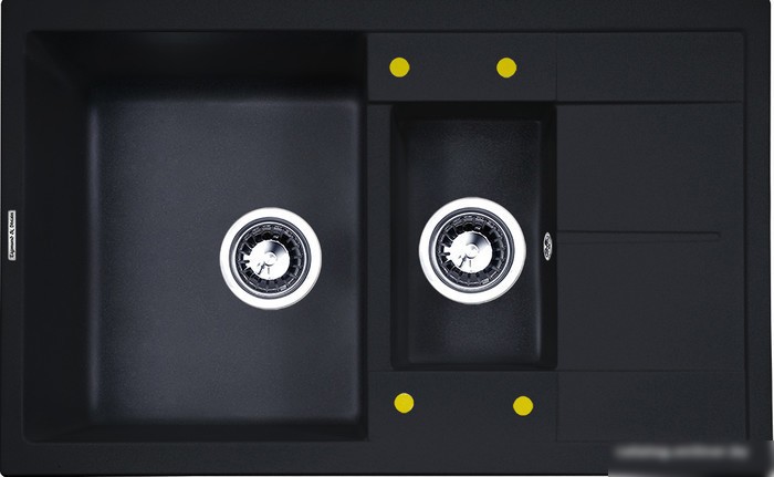 Кухонная мойка Zigmund & Shtain Rechteck 780.2 выполнена из прочного искусственного камня темного цвета «скала». Она устанавливается прямо на столешницу и имеет прямоугольную форму с одной большой и одной меньшей чашей. Основная чаша глубиной 19 см подойдет для большинства кухонных задач, а меньшая — для полоскания и подготовительных работ. Мойка оборачиваемая, что облегчает установку и использование в любом положении. В конструкции есть перелив в малой чаше, предотвращающий затопление. Размеры позволяют устанавливать её в шкаф шириной 45 см, а глубина — 50 см.