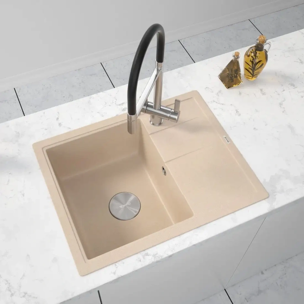 Кухонная мойка ZorG Rock 65 Premium beige выполнена из искусственного кварцевого камня, который отлично выдерживает нагрузки и легко моется. Она устанавливается врезным способом на столешницу, что обеспечивает аккуратный и современный вид кухни. Мойка имеет одну чашу глубиной 20 см, которая позволяет удобно мыть посуду и продукты. Ее размеры — 51 см в длину и 65 см в ширину — подходят для шкафов шириной 50 см. Основная чаша оборачивается, что облегчает монтаж и обслуживание. В конструкции есть перелив, предотвращающий залив воды, а сливная арматура с клапаном входит в комплект. Поверхность матовая, устойчива к пятнам и царапинам. В комплекте отсутствует смеситель и дополнительные аксессуары. Эта мойка сочетает стильность и функциональность, делая работу на кухне комфортной.