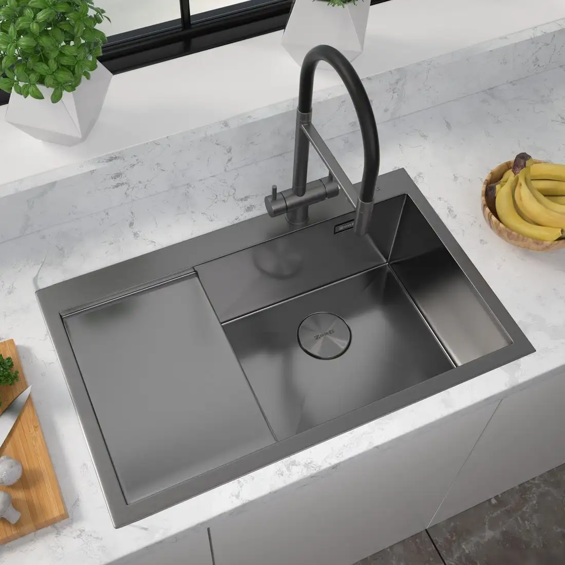 Кухонная мойка ZorG ZRN 5080 Premium R PVD Gunblack