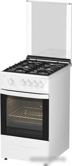 газовая панель + газовый духовой шкаф, поверхность: эмалированная сталь, крышка из закалённого стекла, управление механическое, без таймера, размеры (ШхГхВ): 50x60x85 см, цвет белый