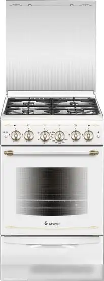 Кухонная плита GEFEST 5100-02 0181 — это газовая модель с четырьмя конфорками и духовкой объемом 52 литра. Она выполнена из эмалированной стали, что делает её удобной для уборки. Плита имеет чугунные решётки, которые хорошо держат посуду и долго служат. В духовке есть возможность гриля и два режима работы, а также огнеупорное стекло дверцы с двойным стеклом для безопасности. Управление — механическое, есть таймер и звуковой сигнал при готовности. Также предусмотрены выдвижной ящик для хранения посуды и принадлежностей. Плита проста в использовании и хорошо подойдет для домашней кухни. Уникальной функцией является наличие механического электроподжига и газ-контроля для безопасности.