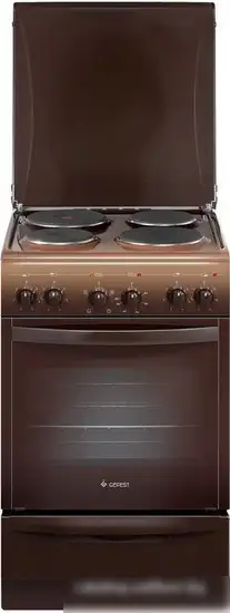электрическая панель + электрический духовой шкаф, поверхность: эмалированная сталь, крышка из эмалированной стали, управление механическое, без таймера, размеры (ШхГхВ): 50x58.5x85 см, цвет коричневый