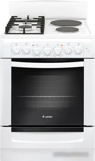 Кухонная плита GEFEST ПГЭ 6112-02 0112 сочетает газовую и электрическую поверхности, что делает приготовление пищи удобным и быстрым. В плите есть 4 конфорки с чугунными решётками, которые хорошо держат посуду. Электрический духовой шкаф объемом 55 литров оснащён системой конвекции, что обеспечивает равномерное приготовление блюд. Управление происходит с помощью механических ручек, а наличие таймера и звукового сигнала облегчают контроль процесса готовки. Для безопасности есть выдвижной ящик для посуды и принадлежностей, а также электроподжиг плиты.