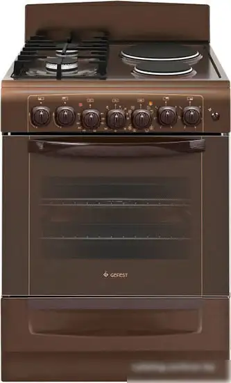 газ+электро панель + электрический духовой шкаф, поверхность: эмалированная сталь, щиток, управление механическое, таймер, размеры (ШхГхВ): 60x60x85 см, цвет коричневый
