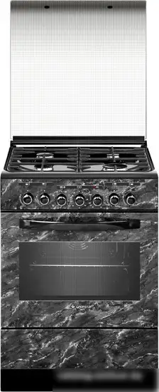 газовая панель + электрический духовой шкаф, газ-контроль конфорок, поверхность: эмалированная сталь, крышка из закалённого стекла, энергопотребление A, управление механическое, таймер механический, размеры (ШхГхВ): 60x60x85 см, цвет черный