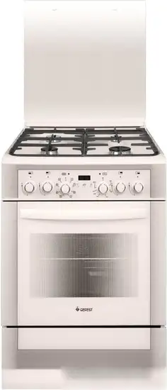 газовая панель + электрический духовой шкаф, газ-контроль конфорок, поверхность: эмалированная сталь, крышка из закалённого стекла, энергопотребление A, управление электронное, таймер электронный, размеры (ШхГхВ): 60x60x85 см, цвет кремовый