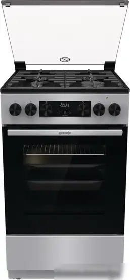 Горячая газовая плита Gorenje GK5C41SF изготовлена в Чехии и выполнена из нержавеющей стали, что делает её прочной и удобной в использовании. На панели расположены 4 газовые конфорки, включая конфорки с быстрым нагревом, что позволяет готовить быстрее и экономить энергию. Плита оснащена электроподжигом, который обеспечивает удобство поджига без спичек. В духовке объем 70 литров, есть функция конвекции и гриль с электрическим нагревом для разнообразных блюд. Функциональный электронный управление имеет светодиодный дисплей и таймер, что облегчает контроль процесса приготовления. Дверца духовки с двойным стеклом и плавным закрыванием обеспечивает безопасность и сохранение тепла. Для безопасности есть блокировка от детей и газ-контроль, а также освещение внутри духовки для удобства осмотра. Также есть выдвижной ящик для хранения посуды и принадлежностей.
