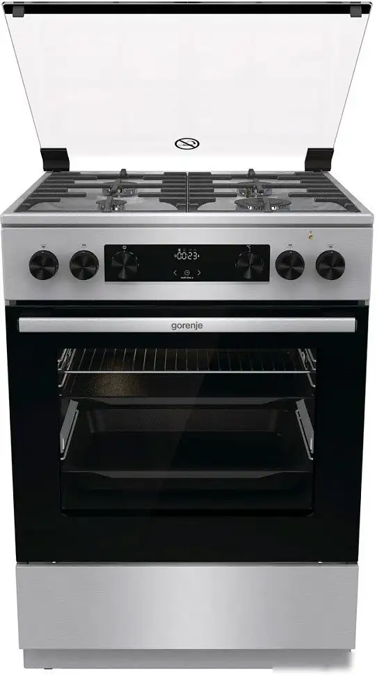 Кухонная плита Gorenje GKS6C72XF сочетает в себе газовую варочную панель и электрический духовой шкаф. Благодаря четырём газовым конфоркам, включая конфорку WOK, вы легко готовите разные блюда одновременно. Мощность варочной панели – 8 300 Вт, она оснащена электроподжигом и системой газ-контроля для безопасной эксплуатации. Рабочая поверхность выполнена из нержавеющей стали, что облегчает уборку и долговечность. Духовой шкаф имеет объём 71 литр, управляется электронным меню с 11 режимами работы, включая гриль и нижний нагрев. Внутренние стенки оснащены металлическими направляющими и телескопическими направляющими для удобства приготовления и очистки. Дверца духовки из двух стекол с плавным закрыванием обеспечивает безопасность и минимальный нагрев внешней поверхности. Прибор обладает функцией паровой чистки, что делает уход за ним проще. В комплект входит противень, решетка и глубокий противень для разнообразных способов готовки. Эта плита отлично подойдет для тех, кто ценит комфорт, функциональность и современный дизайн на кухне.