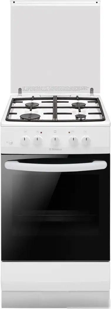 газовая панель + газовый духовой шкаф, газ-контроль конфорок, поверхность: эмалированная сталь, крышка из закалённого стекла, энергопотребление A, управление механическое, без таймера, размеры (ШхГхВ): 60x60x85 см, цвет белый