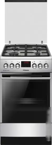 Кухонная плита Hansa FCMS582258 объединяет газовую варочную панель и электрический духовкой объемом 62 литра. Варочная поверхность оснащена четырьмя газовыми конфорками, в том числе с автоматическим электроподжигом и системой газ-контроля для безопасности. Конфорки выполнены из прочных материалов и обеспечивают быстрое нагревание. Электрический духовой шкаф легко управляется с помощью светодиодного экрана, имеет таймер и встроенное освещение. Внутри есть выдвижной ящик для хранения посуды и принадлежностей. Для приготовления предусмотрены режимы нижнего, верхнего нагрева, гриль и размораживание. Духовой шкаф легко очищается вручную и паровым способом. В комплектацию входят глубокий и стандартный противни, решетка и камень для пиццы. Общие габариты плиты — 50 см в ширину, 60 см в глубину и 85 см в высоту, что делает её удобной для стандартных кухонных помещений.