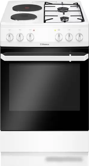 Кухонная плита Hansa FCMW58049 сочетает газовые конфорки и электрический духовку, что позволяет готовить разные блюда одновременно и удобно управлять процессом. Форма рабочей поверхности выполнена из эмалированной стали, которая легко очищается. В приборе есть четыре конфорки, из них две — чугунные, обеспечивающие стабильную работу и длительный срок службы. Объём духовки составляет 62 литра, она работает ручным паровым способом очистки и имеет температуру с термостатом. Управление плиты механическое, простое и понятное, без сложных настроек и функций. В комплект входит глубокий эмалированный противень, который пригодится для запекания и приготовления различных блюд. Компактные размеры позволяют разместить устройство даже в небольших кухнях, а класс энергопотребления А помогает экономить электроэнергию.