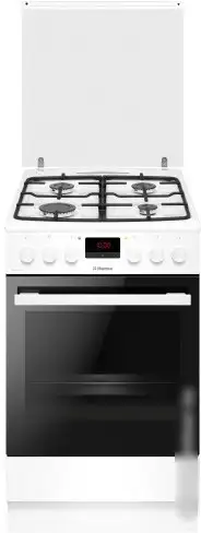 газовая панель + электрический духовой шкаф, газ-контроль конфорок, поверхность: эмалированная сталь, крышка из закалённого стекла, энергопотребление A, управление электронное, таймер электронный, размеры (ШхГхВ): 50x60x85 см, цвет белый