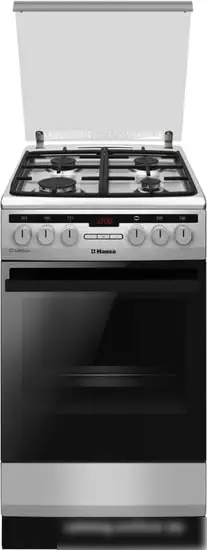 Кухонная плита Hansa FCMXS582977 сочетает в себе газовую варочную поверхность с четырьмя конфорками и электрический духовой шкаф. Она выполнена из нержавеющей стали и оснащена стеклянной крышкой, которая делает внешний вид аккуратным и современным. Варочная панель имеет электроподжиг и газ-контроль для безопасности, а также мощные конфорки для быстрого нагрева блюд. В духовке есть режимы нагрева, гриль и конвекция, что помогает готовить разнообразные блюда. Объем духовки составляет 62 литра, а управление осуществляется электронным дисплеем и таймером. Для удобства есть ящик для посуды и противни, а также качественное освещение внутри.
