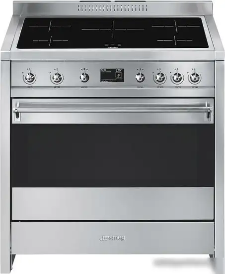 Кухонная плита Smeg A1PYID-9 сочетает индукционную варочную поверхность и электрический духовой шкаф для удобного приготовления блюд. Варочная панель имеет пять конфорок, включая конфорки быстрого нагрева, что позволяет быстро закипать воде и готовить блюда. Рабочая поверхность выполнена из стеклокерамики, которая легко очищается и хорошо сохраняет внешний вид. Электронное управление и ЖК-экран делают настройки простыми и понятными. В духовке есть десять режимов работы, включая гриль, конвекцию и размораживание, что расширяет возможности готовки. Объем духовки составляет 115 литров, а дверца оборудована четырьмя стеклами для лучшей теплоизоляции. В комплект входит выдвижной ящик для посуды и принадлежностей, что помогает сохранять порядок. Дополнительные функции включают автоматические программы приготовления, поддержку температуры и подсветку внутри. Благодаря современным технологиям и качественным материалам эта плита обеспечивает надежную и комфортную работу на кухне.