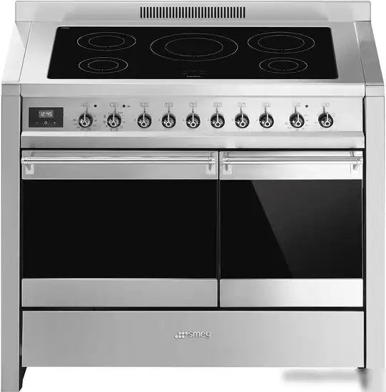Кухонная плита Smeg A2PYID-81 сочетает индукционную варочную поверхность и электрический духовой шкаф. На поверхности из стеклокерамики расположены пять быстрых конфорок с двумя уровнями мощности, что быстро нагревает посуду и помогает готовить еду эффективнее. Электронное управление и светодиодный экран делают настройку удобной и понятной. В духовке объем 96 литров и восемь режимов работы, включая гриль и вентиляцию, позволяют готовить разнообразные блюда. Камеры с раздельным приготовлением и автоматические программы облегчают контроль процесса и ускоряют приготовление. В комплектацию входит вертел, противни, решетка и глубокий противень для разнообразных рецептов. Для безопасности предусмотрены индикаторы остаточного тепла и звуковой сигнал. Благодаря класс энергетической эффективности A, устройство экономит электроэнергию. Также есть выдвижной ящик для хранения посуды и принадлежностей, а откидная дверца из четырёх стекол обеспечивает безопасность и хорошую теплоизоляцию.