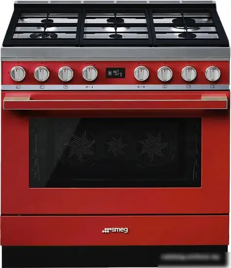 Кухонная плита Smeg CPF9GPR сочетает в себе газовую варочную панель с шестью конфорками, в том числе одной для WOK, и электрический духовой шкаф. Варочная поверхность оснащена автоматическим электроподжигом и сильной мощностью, что позволяет быстро и безопасно готовить. Духовой шкаф имеет объём 115 литров, 14 программ и 20 автоматических режимов, включая гриль, конвекцию и режимы нагрева. Благодаря экрану и таймеру управление осуществляется легко и удобно. Духовой шкаф легко очищается за счёт пиролитической и паровой очистки, а дверь оборудована четырьмя стеклами для теплоизоляции. Устройство оснащено системой электронного управления, автоматическим электроподжигом и блокировкой от детей. Класс энергоэффективности A+ помогает экономить электроэнергию. В комплектацию входят решётки, противни и вертел, что расширяет возможности приготовления. Благодаря металлическому корпусу и традиционному дизайну плита выглядит современно и надежно.