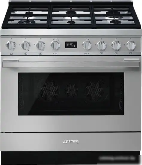 Кухонная плита Smeg CPF9GPX сочетает газовую варочную панель с шестью конфорками, включая одну конфорку WOK для быстрого нагрева. Она оборудована электрическим духовым шкафом с объемом 115 литров, который легко очищается благодаря паровой и пиролитической гидроочистке. Благодаря электронному управлению и ЖК-экрану вы просто настраиваете нужные режимы и параметры приготовления. В духовке есть 14 режимов работы, включая гриль, вентиляцию и конвекцию, что расширяет возможности для готовки. Мощность конфорок достигает 12800 Вт, что обеспечивает быстрое нагревание посуды. Усиленная безопасность гарантируется газ-контролем на духовке, а также плавным закрытием дверцы и автоматическим электроподжигом. В комплект входят противни, решётки и вертел для разнообразных блюд. Эта плита отлично справляется с разными рецептами и подходит для семейной кухни. Устройство привлекательно выглядит благодаря классическому стилю и материалу из нержавеющей стали. Высота регулируется, чтобы удобно встроить прибор в любой кухонный интерьер.