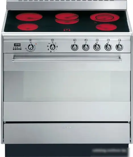 Кухонная плита Smeg SUK91CMX9 сочетает современный дизайн и удобство использования. Она оснащена пятимконфорочной варочной поверхностью с быстрым нагревом HiLight, которая быстро подогревает посуду и уменьшает время готовки. Электрический духовой шкаф с объёмом 115 литров обладает семью режимами работы, включая гриль, конвекцию и нижний + верхний нагрев, что помогает готовить разные блюда равномерно и качественно. Управление осуществляется через светодиодный экран и электронные таймеры, а также есть индикация остаточного тепла для безопасной эксплуатации. Рабочая поверхность выполнена из прочной стеклокерамики, легко очищается и долговечна. В духовке есть выдвижной ящик для посуды и принадлежностей, что упрощает хранение. Максимальная температура духовки достигает 260°C, позволяя запекать и жарить различные блюда. Благодаря класс энергопотребления А, устройство экономит энергию. Также плита имеет механизм автоматического поддержания температуры и функцию быстрого разогрева. Это устройство сочетает надежность, функциональность и стиль, делая приготовление пищи более приятным и удобным.