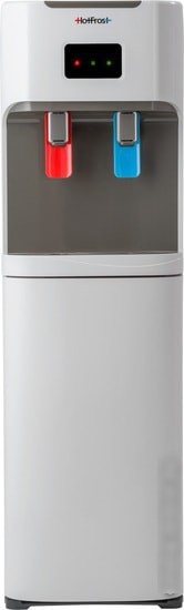 Кулер для воды HotFrost V115AE удобно устанавливается на полу и подает воду как из бутылки снизу. Он быстро охлаждает воду до 10-15°C со скоростью 0.6 литра в час и нагревает до 87-90°C с мощностью 650 Вт, обеспечивая горячую и холодную воду по необходимости. В баке холодной воды размещается 0.6 литра, а в баке горячей — 1.2 литра, что подходит для домашних и офисных целей. Устройство работает тихо, имеет мощность 725 Вт и занимает немного места — шириной 310 мм и высотой 1040 мм. Весом всего 10 кг кулер легко переносить и обслуживать. Он не оснащен встроенными функциями, такими как фильтрация или холодильник, что делает его простым и надежным. Благодаря компактным размерам кулер удачно впишется в любое пространство. Он обеспечивает быстрый доступ к горячей и холодной воде, что удобно для ежедневного использования. В этом устройстве нет защиты от детей и дополнительных функций, что делает его максимально простым в использовании.