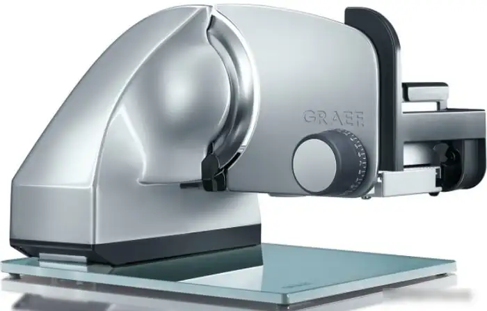 Ломтерезка Graef Master M90 — это надежный прибор для нарезки продуктов с мощностью 170 Вт и максимальной толщиной разреза до 20 мм. Её рабочая поверхность наклонена на 30°, что упрощает процесс нарезки и делает его более удобным. Устройство оснащено приёмным лотком, который удерживает нарезанный продукт и помогает сохранять порядок на кухне. Есть отделение для шнура, что удобно для хранения и транспортировки. Ломтерезка выполнена в стильных цветах — серебристом и черном, идеально впишется в современную кухню. Такие функции позволяют быстро и аккуратно нарезать хлеб, мясо или овощи. Благодаря простоте в использовании — отличный выбор для домашней кухни.