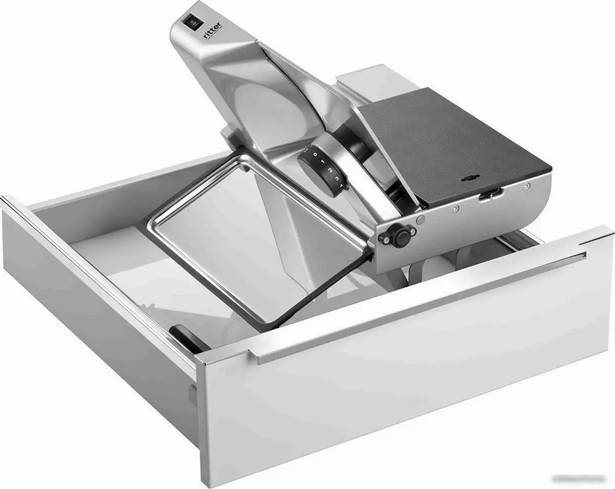 - Приёмный лоток — помогает сохранить чистоту при нарезке и облегчает работу.