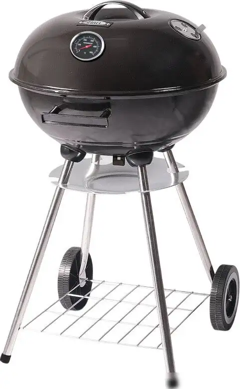 Гриль Start Grill Derby SG17KTERM — компактное устройство, созданное для удобного и быстрого приготовления пищи на свежем воздухе. Он выполнен из прочной стали с жаропрочной эмалью и оснащён круглой жарочной поверхностью диаметром 41 см, которая обеспечивает достаточную площадь для готовки. В комплект входит крышка, хромированная решётка для приготовления и нижняя решётка для аксессуаров, что делает процесс готовки более удобным. Гриль оснащён полкой для дров и колёсами, что облегчает его перемещение и хранение. Благодаря встроенному термометру вы контролируете температуру и добиваетесь идеально подготовленной пищи. Конструкция не предусматривает регулировку высоты решёток, однако упрощает использование и быстрое приготовление блюд. Габариты гриля — 44 × 71 × 46 см, вес всего 3,7 кг, что делает его очень портативным. Такой гриль отлично подходит для пикников, дачи и отдыха на природе.