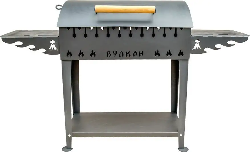 | Комплект поставки | крышка, ручка, полка (боковая 2 шт.), крючки для аксессуаров, дровница, ножки, жаровня |