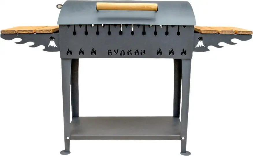 Мангал для дачи Вулкан Гриль В XL выполнен из прочной стали толщиной 5 мм и имеет прямоугольную форму. Он включает в себя жаровню, боковые полки, ручки, крючки для аксессуаров и ножки, что облегчает работу на улице. Размеры рабочей поверхности позволяют готовить большие порции: длина 75 см и ширина 35 см, глубина жаровни — 20 см. Конструкция предусматривает регулировку высоты решёток или шампуров в 2 позициях, что помогает контролировать процесс жарки. В комплект входит крышка для защиты блюда от пыли и дождя. В мангале есть полки для дров и аксессуаров, которые делают его более удобным. Он не имеет колёс, дымового купола или термометра, что уменьшает его сложность и стоимость. Размеры — 146 см в длину, 89 см в высоту и 35 см в ширину, вес мангала делает его стабильным и устойчивым. Этот мангал отлично подойдет для тех, кто любит готовить на свежем воздухе и ценит простоту в использовании.