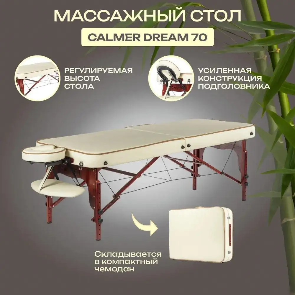 Массажный стол Calmer Dream 70 предлагает удобство и надежность для процедур дома или в салоне. Стол сделан из прочного дерева и покрыт ПВХ, что обеспечивает долговечность и защиту от повреждений. Он выдерживает нагрузку до 250 кг, что подходит для разных типов тел. Стол легко складывается для удобного хранения и переноски, а также регулируется по высоте (от 63 до 88 см) для комфортной работы. В устройстве есть отверстие для лица и подголовник, что делает процедуры более комфортными. В комплектацию входит подлокотник и чехол для переноски, чтобы легко брать его с собой. Поверхность наполнена пенополиуретаном толщиной 6 см, что создает комфорт при использовании. Размеры стола 185 х 70 см позволяют разместиться практически любому клиенту. Массажный стол подходит для массажных и косметологических процедур, делая работу мастера более эффективной и комфортной.