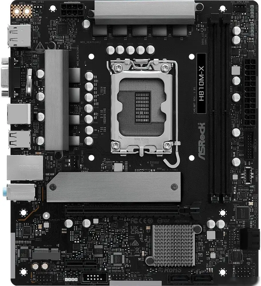 mATX, память 2xDDR5/DDR5 CUDIMM до 6400 МГц, слоты: 1xPCIe x16 4.0, 1xPCIe x1, 1xM.2, 6+1+1+1+1 фаз питания