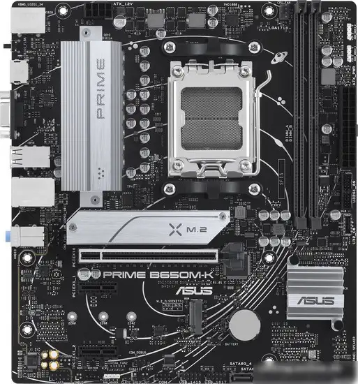 Материнская плата ASUS Prime B650M-K предназначена для сборки ПК с процессорами AMD серии 7000. Она работает с процессорами на сокете AM5 и поддерживает память DDR5 с максимальным объемом до 96 ГБ. На плате есть два слота M.2 для быстрых накопителей и четыре разъема SATA для HDD и SSD. В системе есть встроенный HDMI для подключения монитора и сеть Ethernet для интернет-соединения. Также есть разъемы для вентиляторов и подсветки, что помогает организовать эффективное охлаждение и красивый внешний вид ПК. Благодаря наличию PCIe 4.0, плата обеспечивает высокую скорость передачи данных для видеокарт и других устройств. Ее размеры позволяют установить ее даже в компактные корпуса, а функции охлаждения и расширения делают ее надежным выбором для домашних компьютеров.