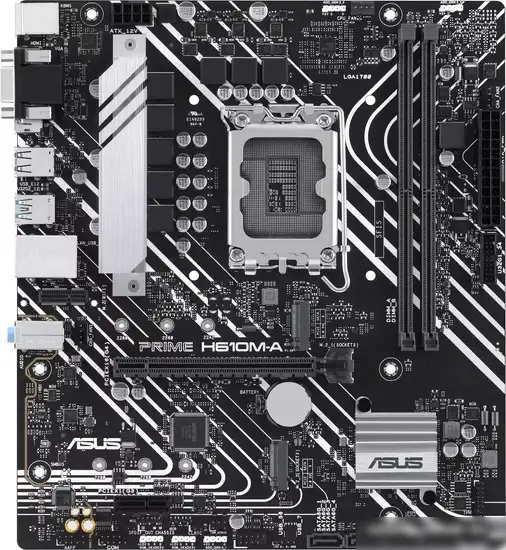 mATX, сокет Intel LGA1700, чипсет Intel H610, память 2xDDR5 до 5600 МГц, слоты: 1xPCIe x16, 1xPCIe x1, 2xM.2