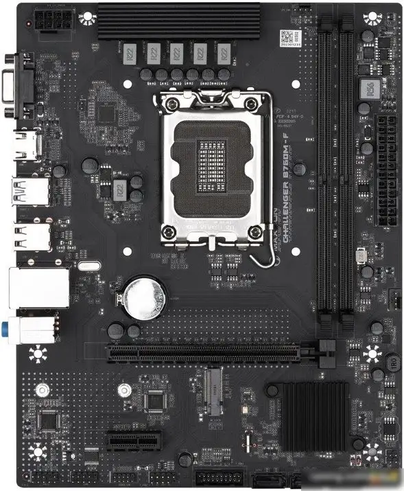 mATX, сокет Intel LGA1700, чипсет Intel B760, память 2xDDR4 до 4266 МГц, слоты: 1xPCIe x16 4.0, 1xPCIe x1, 2xM.2, 4+1+1 фаз питания
