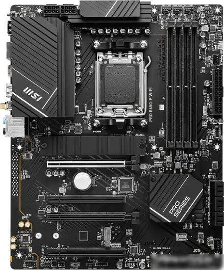 Материнская плата MSI PRO B650-P WiFi предназначена для процессоров AMD 7000 с сокетом AM5. Она поддерживает память DDR5 и DDR4 с максимальным объемом до 128 ГБ и частотой до 6400 МГц, что помогает ускорить работу системы. В плате есть четыре слота PCIe, включая три слота PCIe 4.0 для видеокарт и устройств хранения данных, а также два разъема M.2, поддерживающие NVMe SSD с скоростью до PCIe 4.0 x4. Благодаря встроенным модулям Wi-Fi 6E и Bluetooth 5.2, вы можете легко подключаться к сети и устройствам без проводов. Плата оснащена четырьмя разъемами для корпусных вентиляторов и двумя для подсветки RGB, что позволяет настроить охлаждение и оформление по желанию. Внешние интерфейсы включают USB-C и USB 3.2 для быстрой передачи данных, HDMI для видеовыхода и 2.5 Гбит/сек Ethernet. Устройство поддерживает технологию AMD MULTI-GPU, что повышает графическую производительность. Встроенный звук с поддержкой 7.1 обеспечивает качественное воспроизведение аудио.
