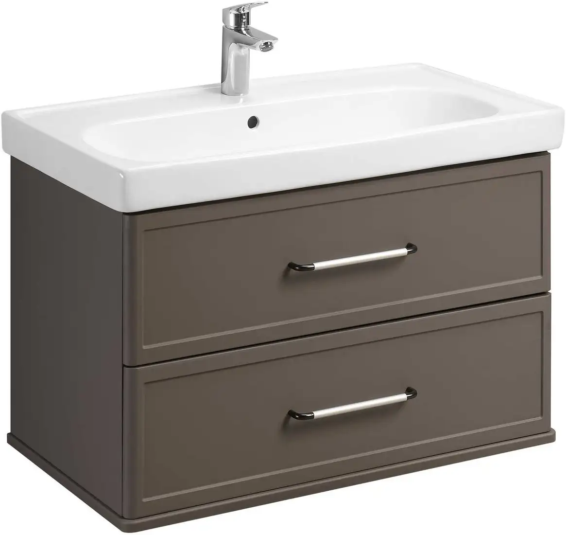 Тумба под умывальник Акватон Нео Классика 85 выполнена из высокого качества МДФ с матовым покрытием, что делает её устойчивой и долговечной. Она имеет два вместительных ящика, которые удобно организуют пространство и легко открываются с помощью ручек и направляющих с доводчиками, обеспечивая плавное и бесшумное закрытие. Тумба предназначена для подвешивания и подходит для любой ванной комнаты благодаря стильному коричневому цвету и классическому дизайну с фрезеровкой. В комплект не входит умывальник и смеситель, что позволяет выбрать подходящие модели по вашему вкусу. Размеры тумбы: ширина 81,8 см, глубина 46,1 см, высота 49,8 см, она весит 28,8 кг и проста в установке. Эта мебель отлично сочетает традиционные элементы с современными функциями и идеально подходит для стильной ванной комнаты.