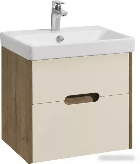 Тумба под умывальник Акватон Оливия 55 отличается простым и стильным дизайном. Она выполнена из ЛДСП и предназначена для подвесного монтажа, что облегчает уборку под ней. Размеры тумбы: ширина 53,2 см, глубина 42,7 см и высота 48 см, а её вес составляет 23 кг. Тумба доступна в бежевом и дуб Веллингтон оттенках, благодаря чему легко впишется в разные интерьеры. В комплект входит сама тумба, но смеситель и умывальник нужно приобретать отдельно. Эта модель не имеет встроенной корзины для белья и угловых элементов.