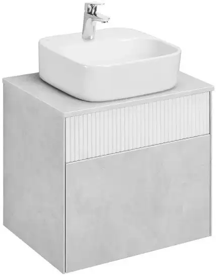 Тумба с умывальником Марбл Слэйт 60 делает вашу ванную комнату удобной и стильной. В комплект входит вместительный умывальник, а сама тумба оснащена двумя ящиками с системой push-to-open, которая позволяет легко и тихо закрывать их. Верхняя поверхность выполнена из МДФ с матовой белой пленкой и эффектом soft touch, что делает её приятной на ощупь. Нижний фасад и корпус сделаны из влагостойкой ламинированной ДСП, что защищает от влаги и обеспечивает долговечность. Ящики помогают держать все необходимые вещи в порядке и легко доступны. Эта модель легко устанавливается и занимает немного места.