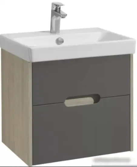 Эта мебель для ванной комнаты Акватон Оливия — удобная тумба с умывальником. В ней есть встроенный умывальник, он идет в комплекте, а сама тумба сделана из прочных материалов: ЛДСП и МДФ. Размеры тумбы позволяют удобно установить ее в небольшом пространстве: ширина — 53,2 см, глубина — 42,7 см, высота — 48 см. Ее можно крепить к стене, что экономит место и делает уборку проще. Выполнена в красивых цветах: коричневом и сером, что подойдет к разным стилям интерьера. Она весит около 27 кг, что обеспечивает прочность и надежность. Эта тумба — хороший вариант для тех, кто хочет сочетать дизайн и практичность в ванной комнате.