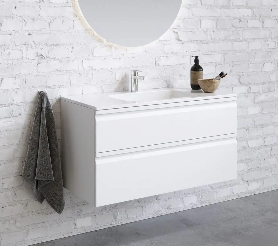 - Совместимость с умывальником шириной 100 см – делает дизайн ванной более целостным и эстетичным.