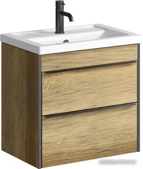 тумба под умывальник, умывальник в комплекте, подвесная установка, ширина: 61 см