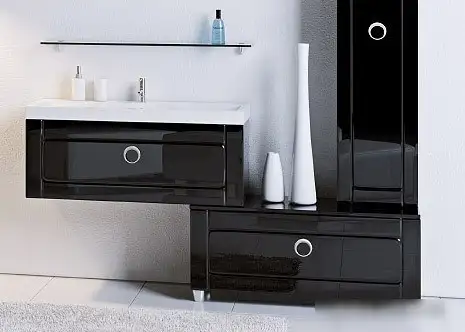 Тумба Aqwella Инфинити 100 выполнена из МДФ и имеет черный цвет, что делает её стильной и универсальной. Размеры тумбы: ширина 100 см, глубина 40 см и высота 44 см, что позволяет удобно использовать в ванной или другом помещении. Конструкция тумбы проста и прочна, без углов и встроенной подсветки. В комплекте нет умывальника и корзины для белья, она предназначена для хранения и организации вещей. Тумба легко устанавливается на пол и не имеет встроенной мебели, что позволяет быстро собрать и использовать. Это удобное решение для тех, кто хочет аккуратно убирать предметы и придать интерьеру стиль.