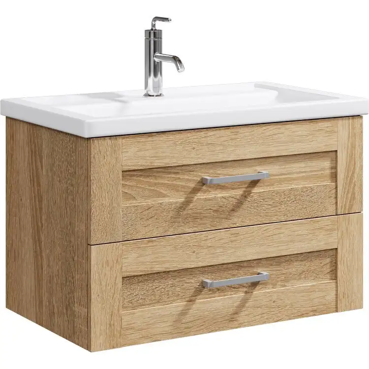 Тумба под умывальник Aqwella Фостер FOS01082DS выполнена из прочных материалов ЛДСП и МДФ. Она устанавливается на стену, что помогает сэкономить пространство в ванной комнате. Тумба имеет ширину 76,8 см и глубину 46 см, идеально подходящую для умывальника шириной 80 см. Ее цвет — натуральный дуб сонома, что создает теплую и уютную атмосферу. Конструкция тумбы простая и надежная, без угловых элементов и встроенной подсветки. В комплект не входит умывальник, поэтому вы можете выбрать модель по своему вкусу. Для удобства использования в тумбе есть выдвижные ящики с доводчиками, обеспечивающими мягкое закрывание. Тумба весит 22,6 кг, легко монтируется и служит долговечно. Благодаря стильному дизайну и практичным функциям, она хорошо впишется в любой интерьер ванной.